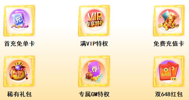平台内游戏均自带超高爆率、百倍经验、无限元宝等特权,还有 GM 后台、满 V 开局等独家福利,爽玩无压力。 了解更多
